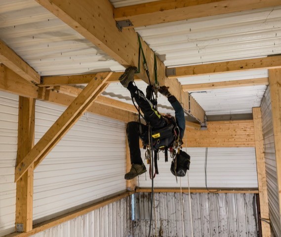 La particularité de ce chantier résidait dans la technique de progression en artificiel : nos experts ont déplacé leurs cordes au fur et à mesure, passant d’une poutre à l’autre tout en ajoutant de nouveaux points d’ancrage pour avancer en sécurité. Une méthode exigeante, adaptée aux contraintes de ce monument historique, où chaque geste doit allier précision, respect du bâti et sécurité absolue.